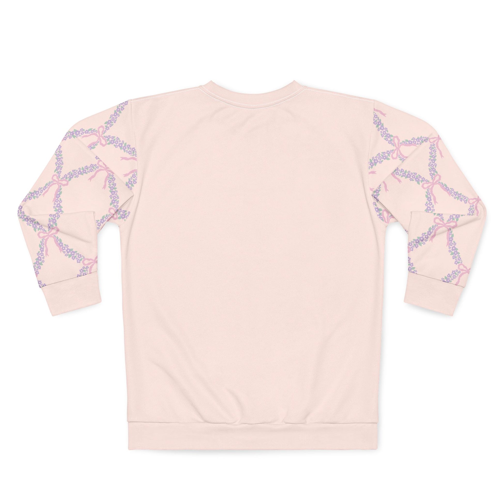 Soft, playful, and unapologetically flirty — this all-over printed sweatshirt carries delicate coquette bows along each sleeve, like little winks every time you move. The lightweight, smooth polyester keeps printed colors bright so the bow motifs feel lively and fresh. Wear it on slow mornings with coffee and a sketchbook, on breezy evenings at a small gallery opening, or when you want to add a sweet, vintage-inspired touch to an otherwise simple outfit. It sits comfortably at the crew neck and falls in a classic, relaxed shape that lets the sleeve art do the talking. For people who love subtle romantic details and a pop of personality, this sweatshirt reads like a soft love note you can wear.