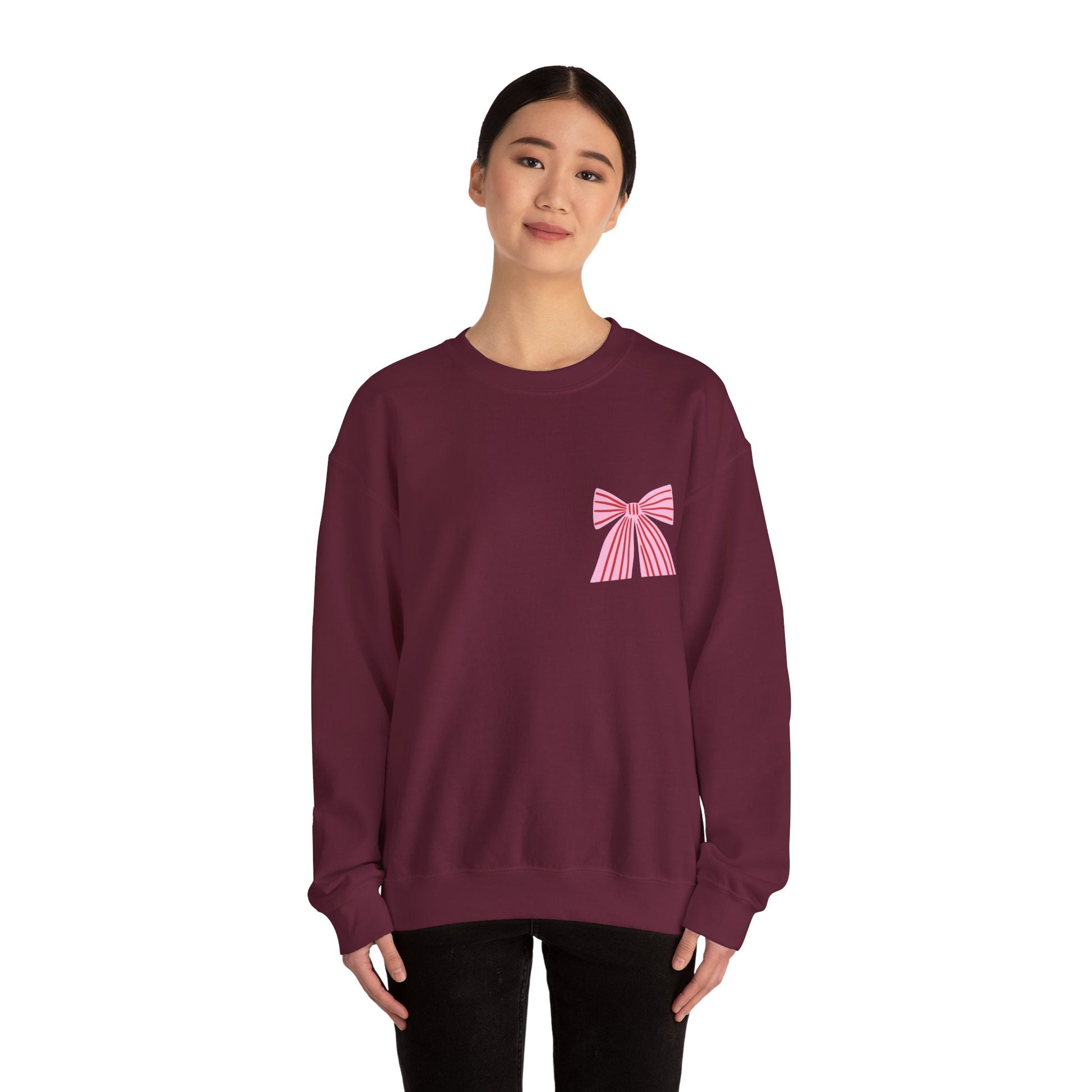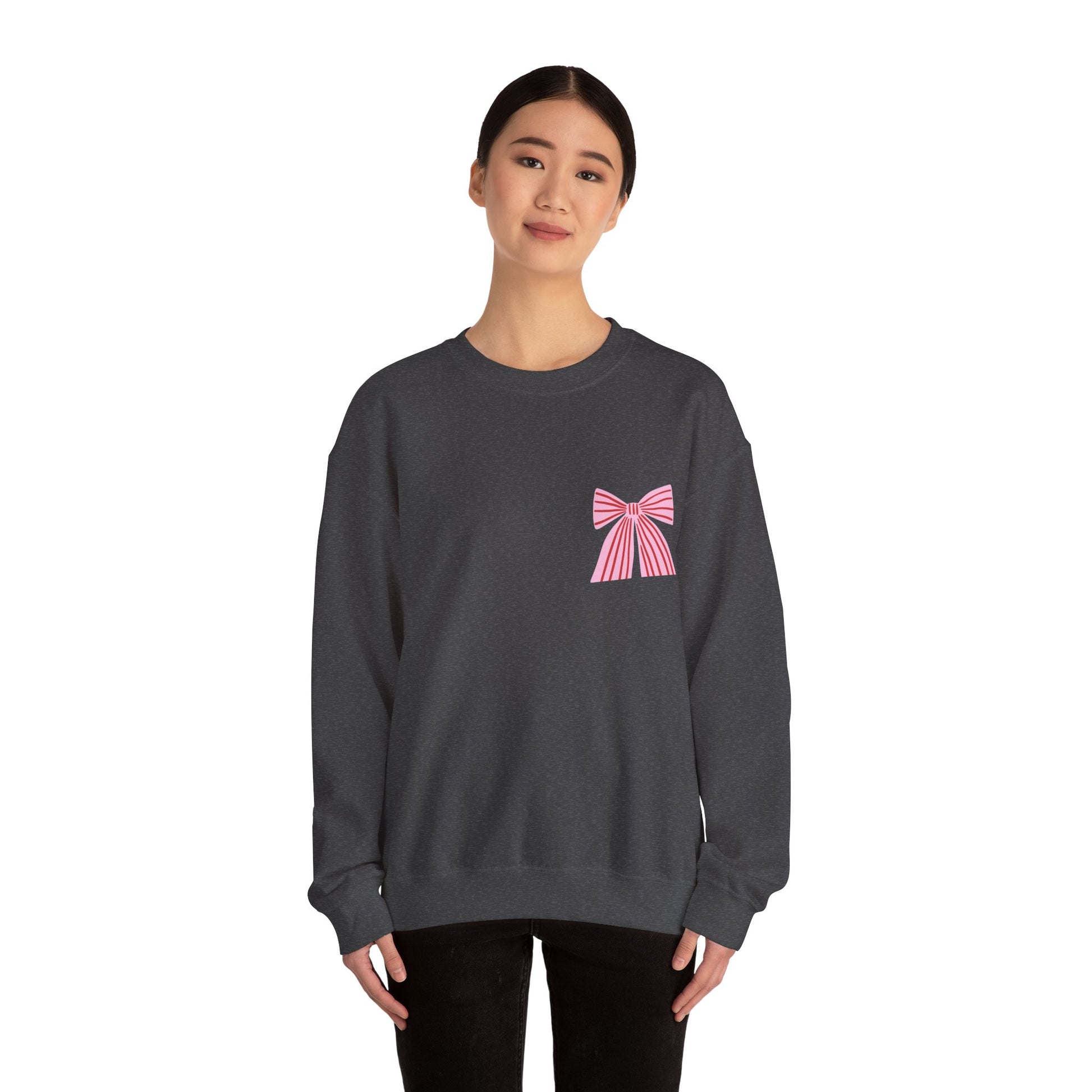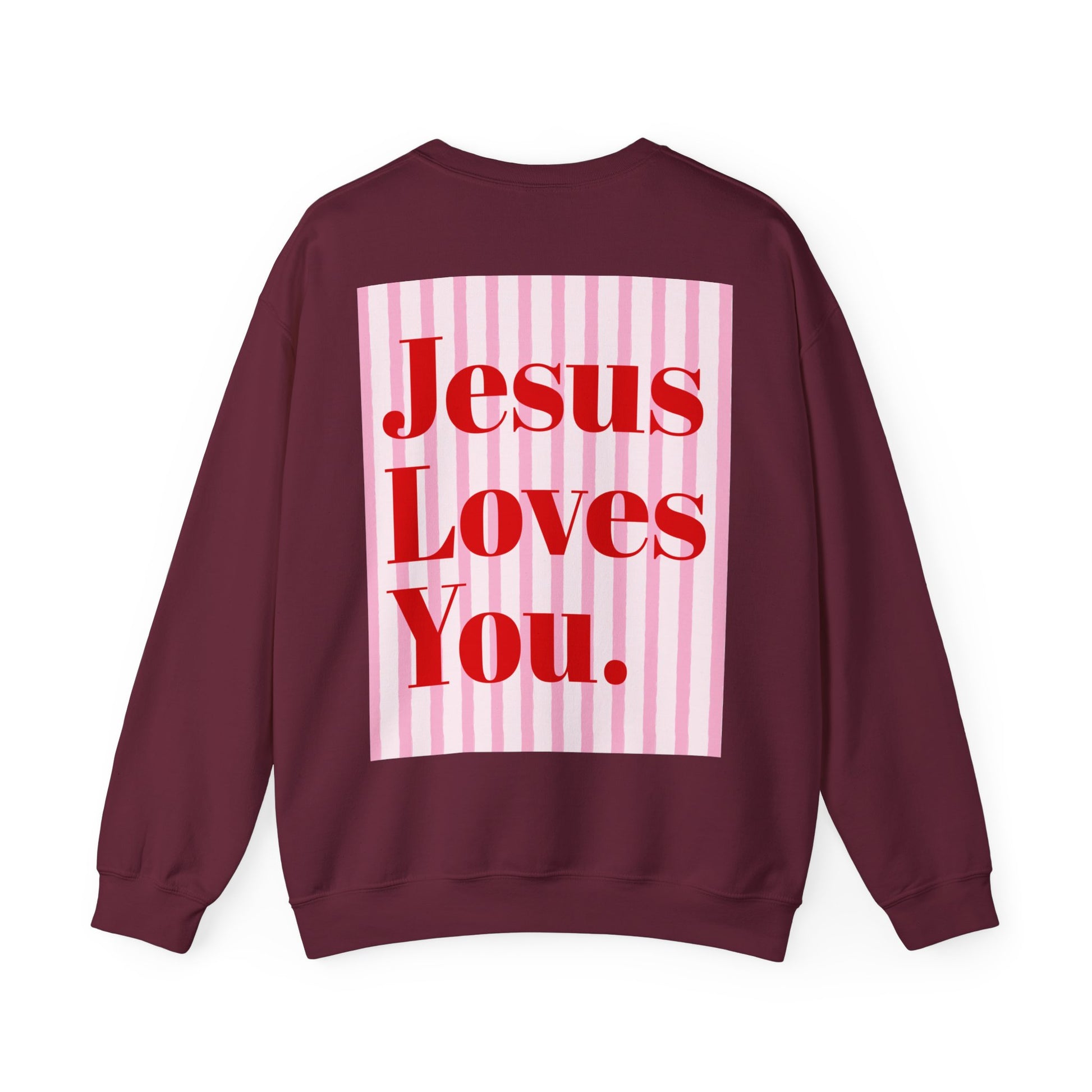 Faith Crewneck Sweatshirt — "Jesus Loves You" Pink & Red Bows - Front & Back